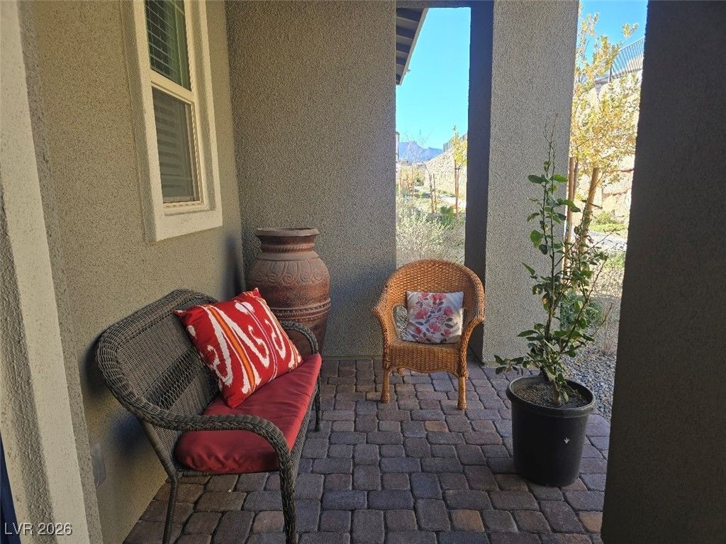 Discover sophisticated resort style 55Plus living in Summerlin in the guard gated community of Heritage at Stonebridge! Minutes to Red Rock Canyon, Downtown Summerlin & 215 Beltway. Front entry from the scenic walking path. Open Concept layout to host incredible gatherings! Chef's kitchen with QUARZ countertops a large ISLAND with bar seating + GE Stainless steel appliances. 10 ft ceilings! Luxurious tile plank flooring! Primary suite is separate that has a bath with dual vanities, & walk in shower & walk in closet. Guest quarters & bath are separate that's great for privacy. Private backyard patio area to Grill & Chill! Residents get to enjoy the resort style amenities such as a luxury pool, pool cabanas, lap pool, Bocci Ball, Pickle Ball, Tennis & Fitness Center, community events, walking & biking trails, Red Rock, City & Strip views from the trails & clubhouse. Seller is ready to entertain offers?don't miss this opportunity to own in one of Summerlin's most sought-after communities